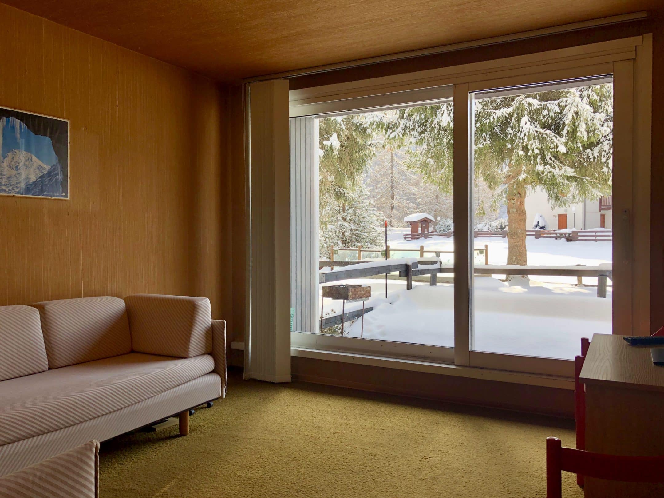 In zona Granges, proponiamo in affitto per la stagione invernale all’interno del condominio ” Vieux Moulin” , bell’appartamento al piano terra composto da ingresso su disimpegno, soggiorno con accesso diretto nel giardino, cucina abitabile, camera da letto matrimoniale e piccola cameretta con letto a castello, bagno e garage. Arredato.