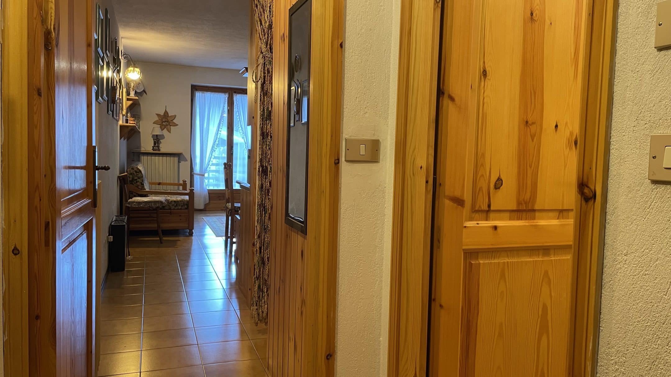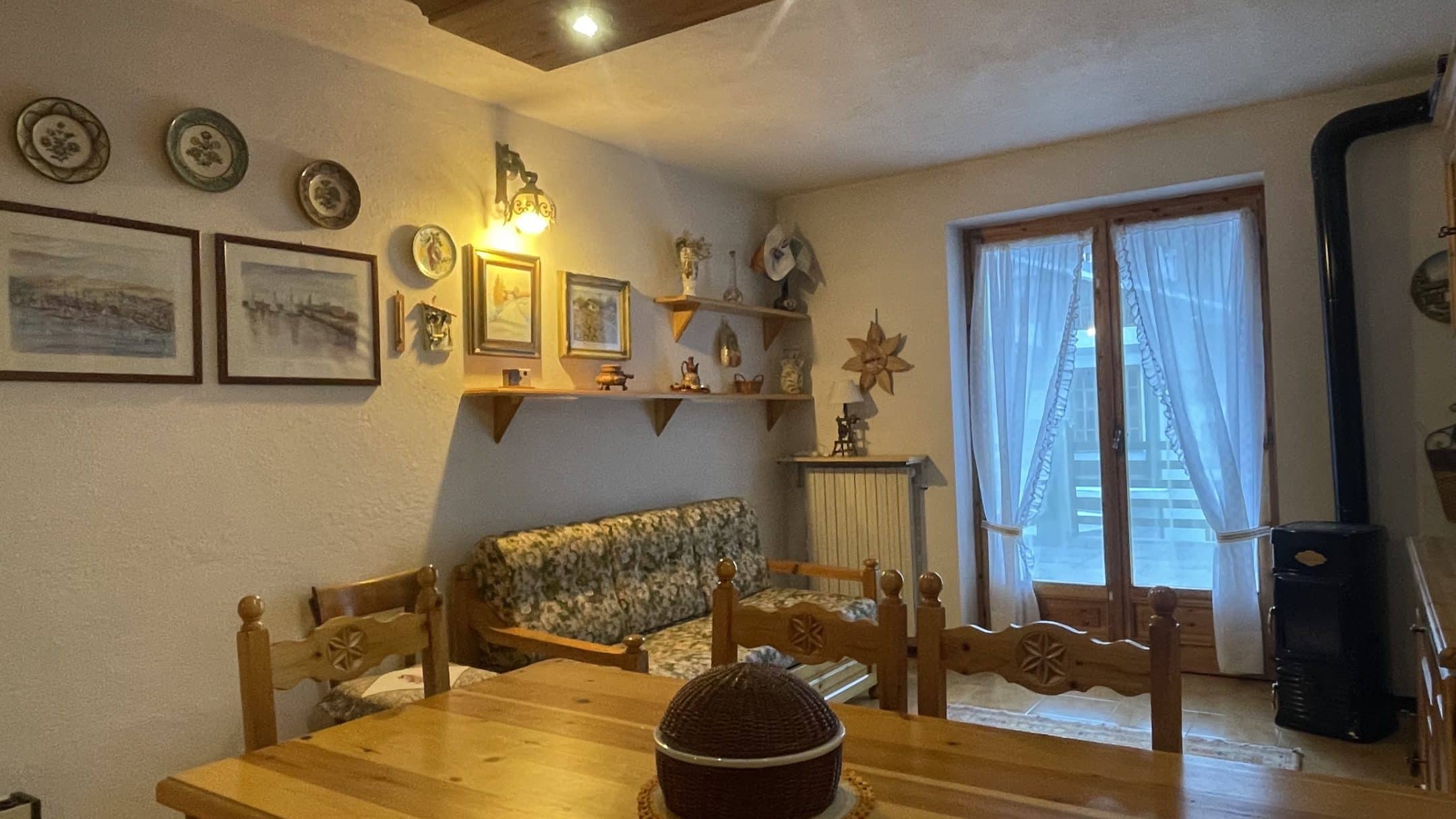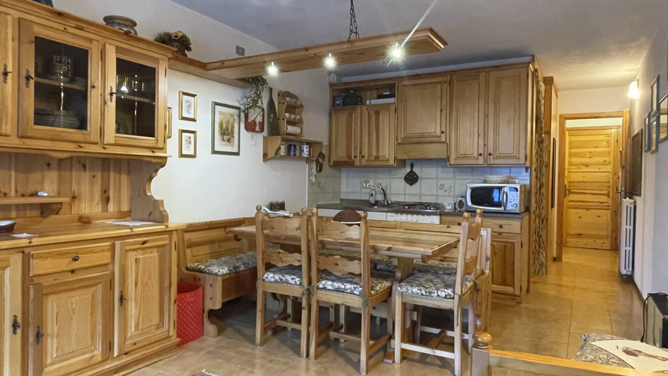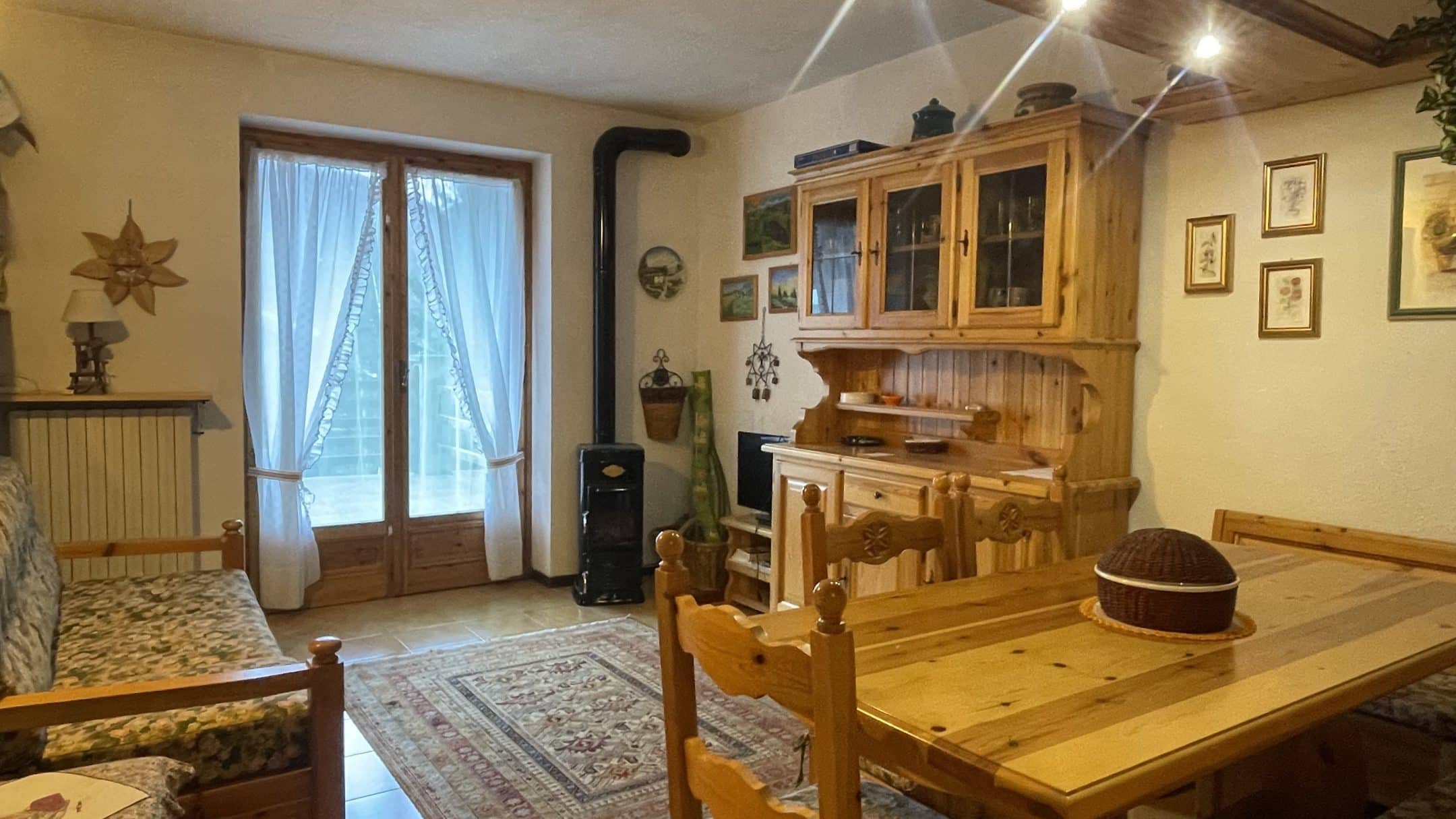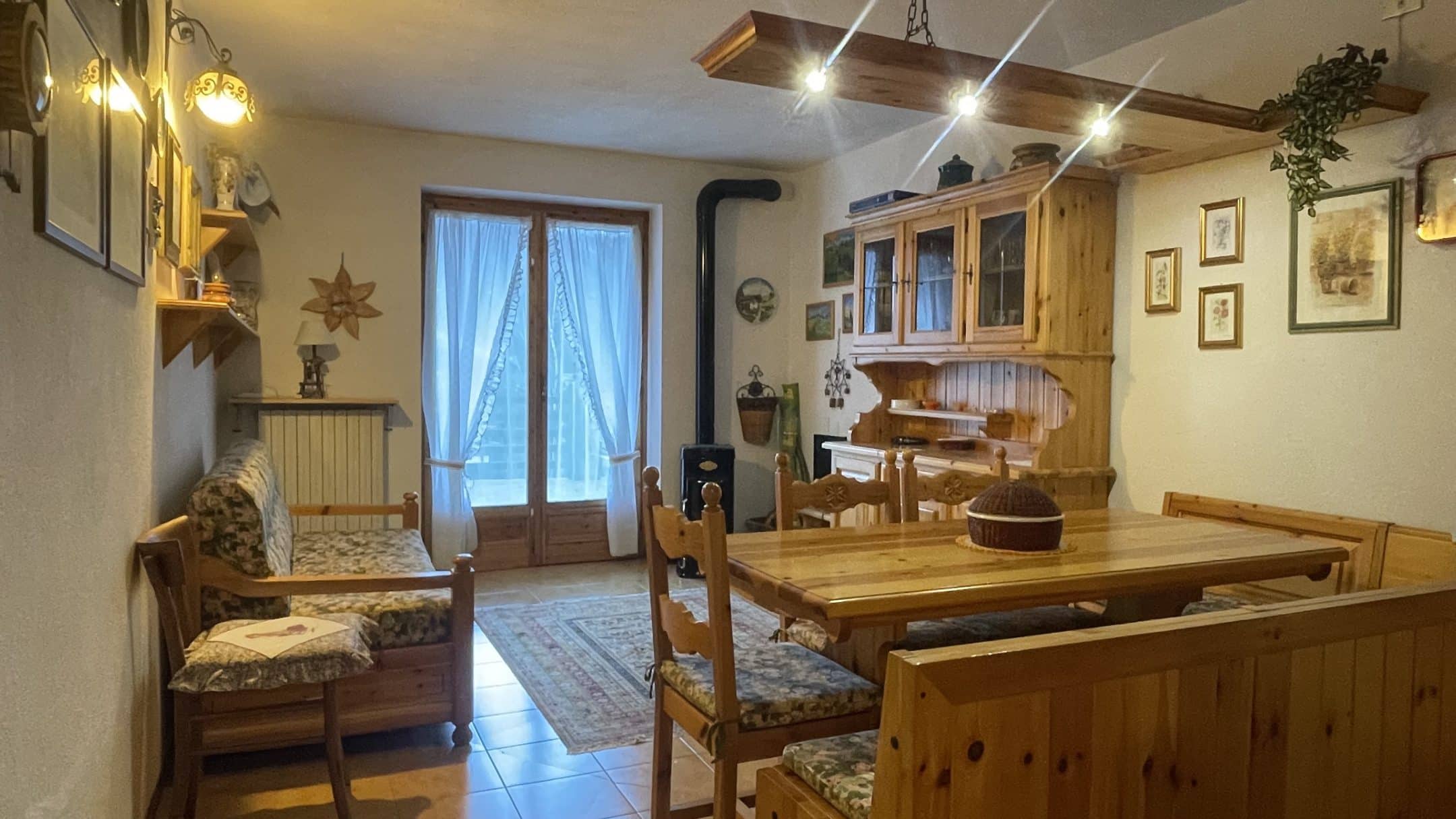 Il comfort è garantito dal teleriscaldamento attivo tutto l’anno e dalla presenza di una stufa a legna, che regala alla casa un’atmosfera calda e autentica, tipica delle baite di montagna. L’arredamento in legno massello valorizza ulteriormente gli ambienti, rendendoli intimi e accoglienti, perfetti dopo una giornata sulla neve o all’aria aperta.