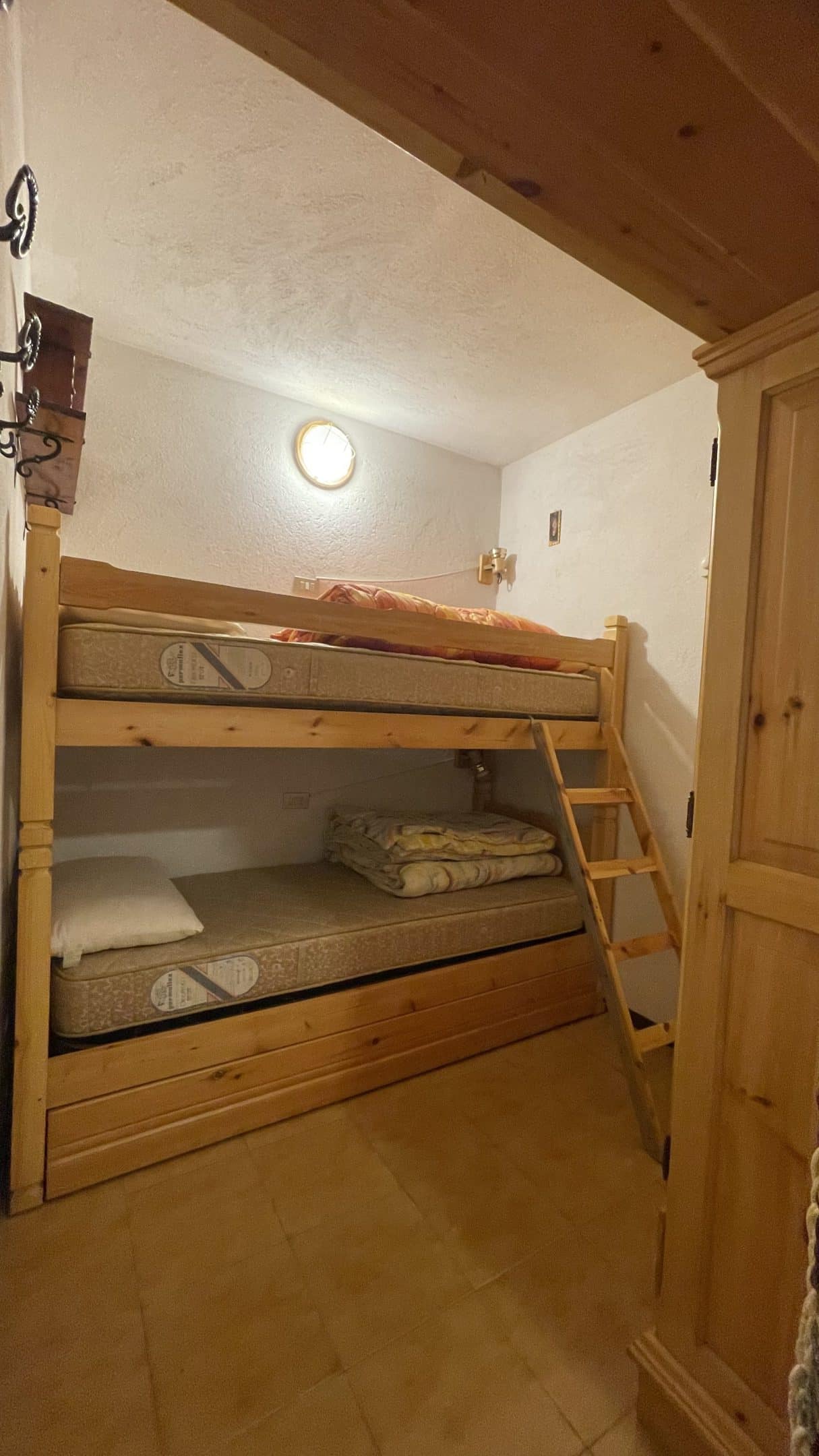 L’abitazione è composta da ingresso, bagno e cameretta ricavata con mobilio su misura che ospita un comodo letto a castello, senza pareti divisorie, e accogliente soggiorno con angolo cottura, dotato di divano letto, per un totale di 4 posti letto. Dal soggiorno si accede al terrazzo privato esposto a sud, ideale per godere del sole e del panorama in ogni stagione.