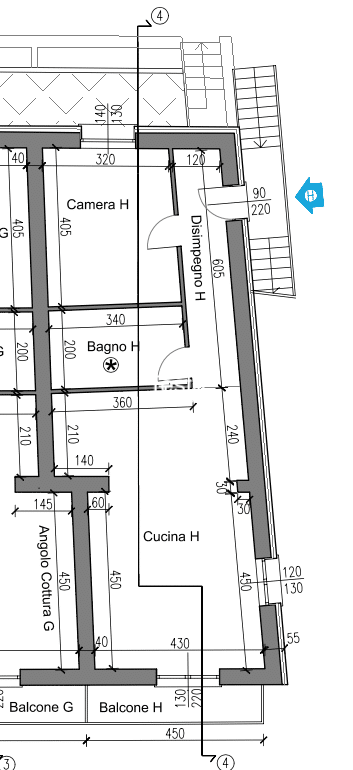 La distribuzione interna permette la realizzazione di un soggiorno con cucina a vista, una camera da letto e un bagno, con ambienti luminosi e ben organizzati.