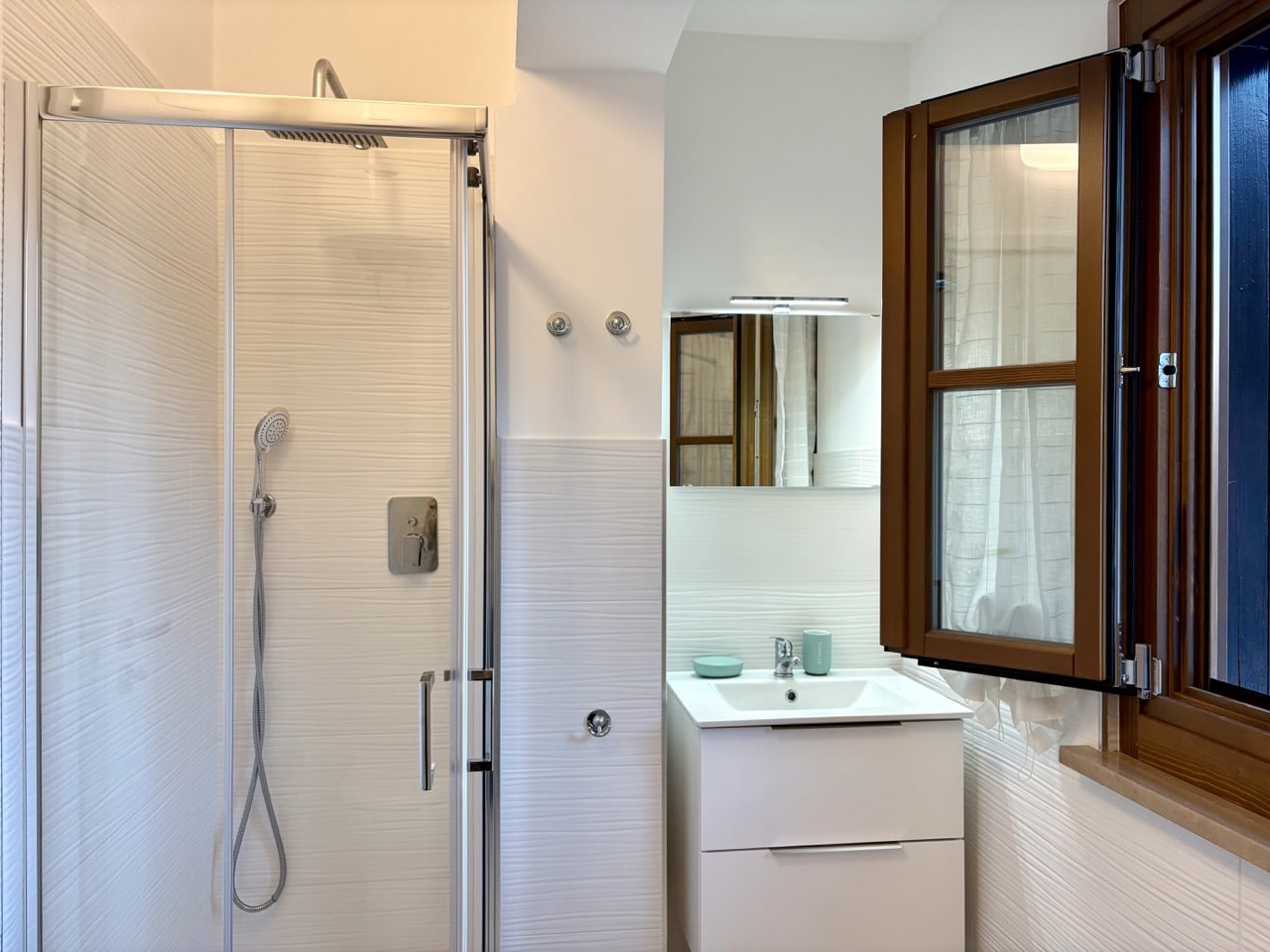 Il riscaldamento è gestito tramite teleriscaldamento con termovalvole e contabilizzatori, e l’accesso risulta particolarmente sicuro grazie a un ingressino comune ai due alloggi, chiuso da porta blindata. Anche questo immobile è stato completamente ristrutturato e arredato con gusto, risultando pronto per essere vissuto o destinato ad affitti turistici di breve periodo, molto richiesti nella zona.