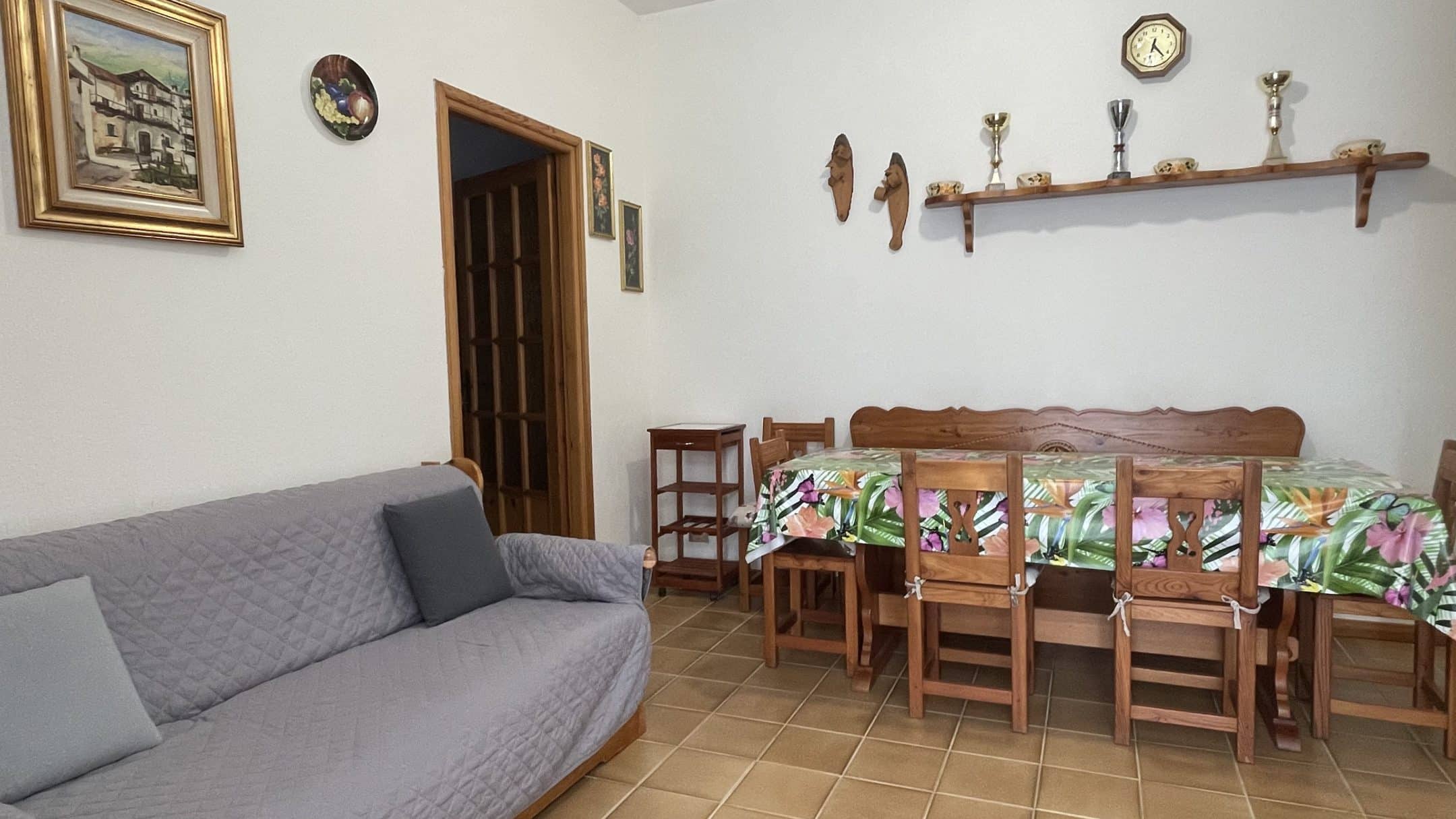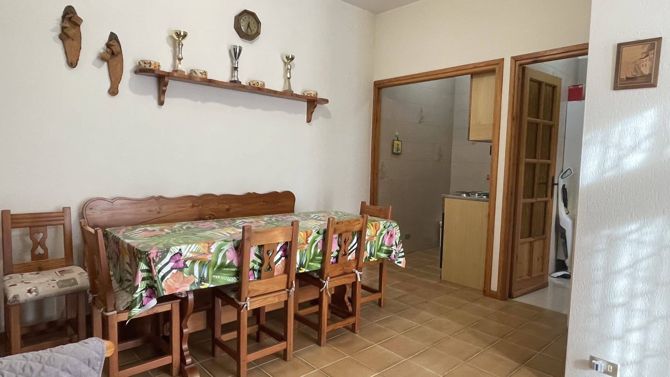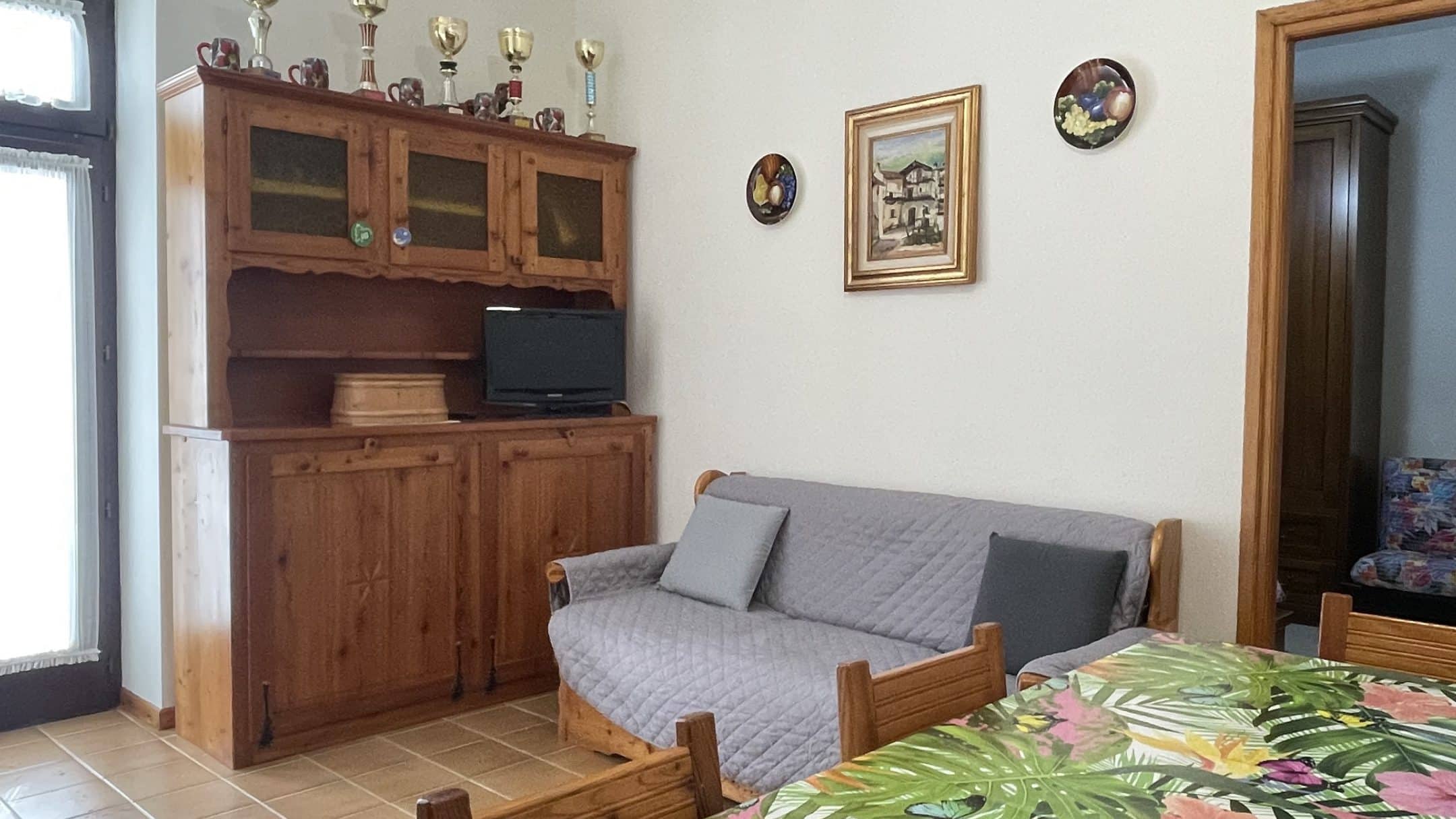 L’abitazione si apre su un accogliente soggiorno con zona pranzo, perfetto per momenti di relax dopo le passeggiate nei boschi, affiancato da un cucinotto funzionale. Completano la proprietà un antibagno con lavatrice, un bagno finestrato e una ampia camera da letto matrimoniale, luminosa e confortevole.