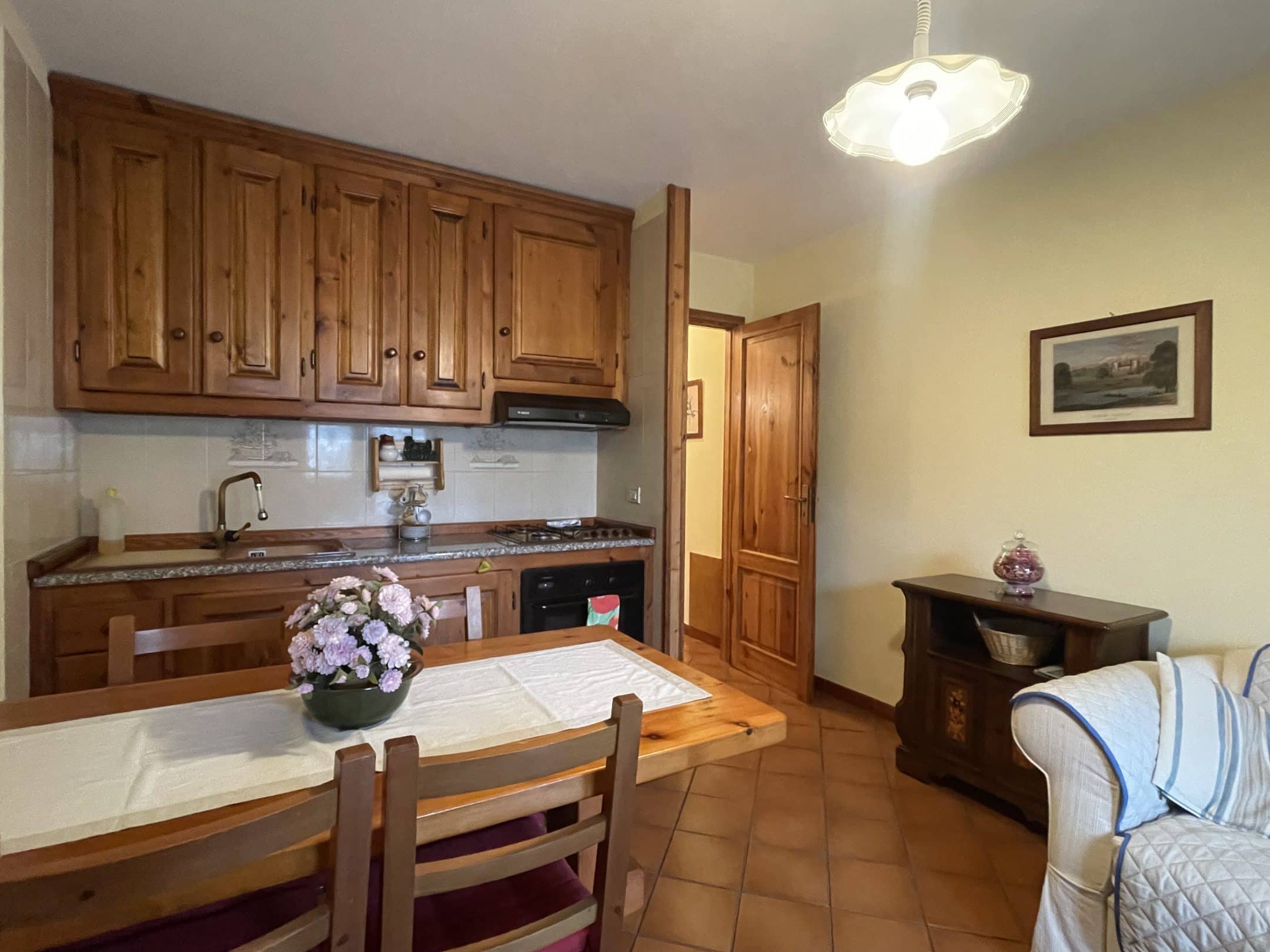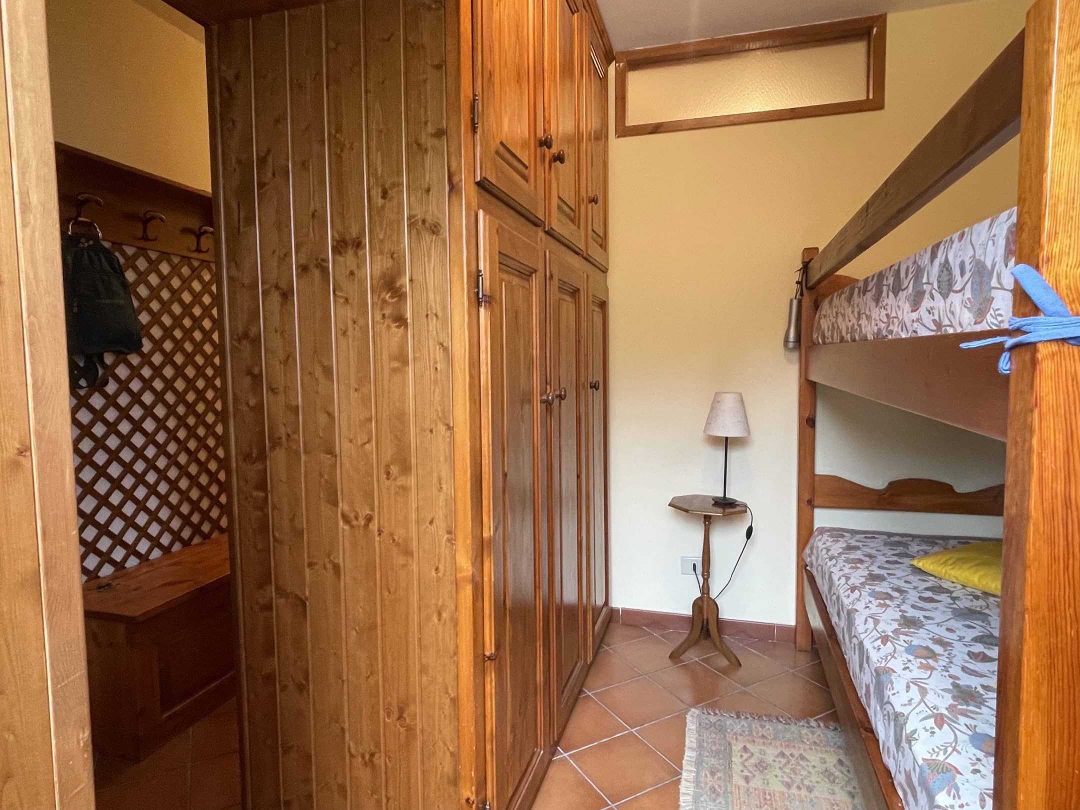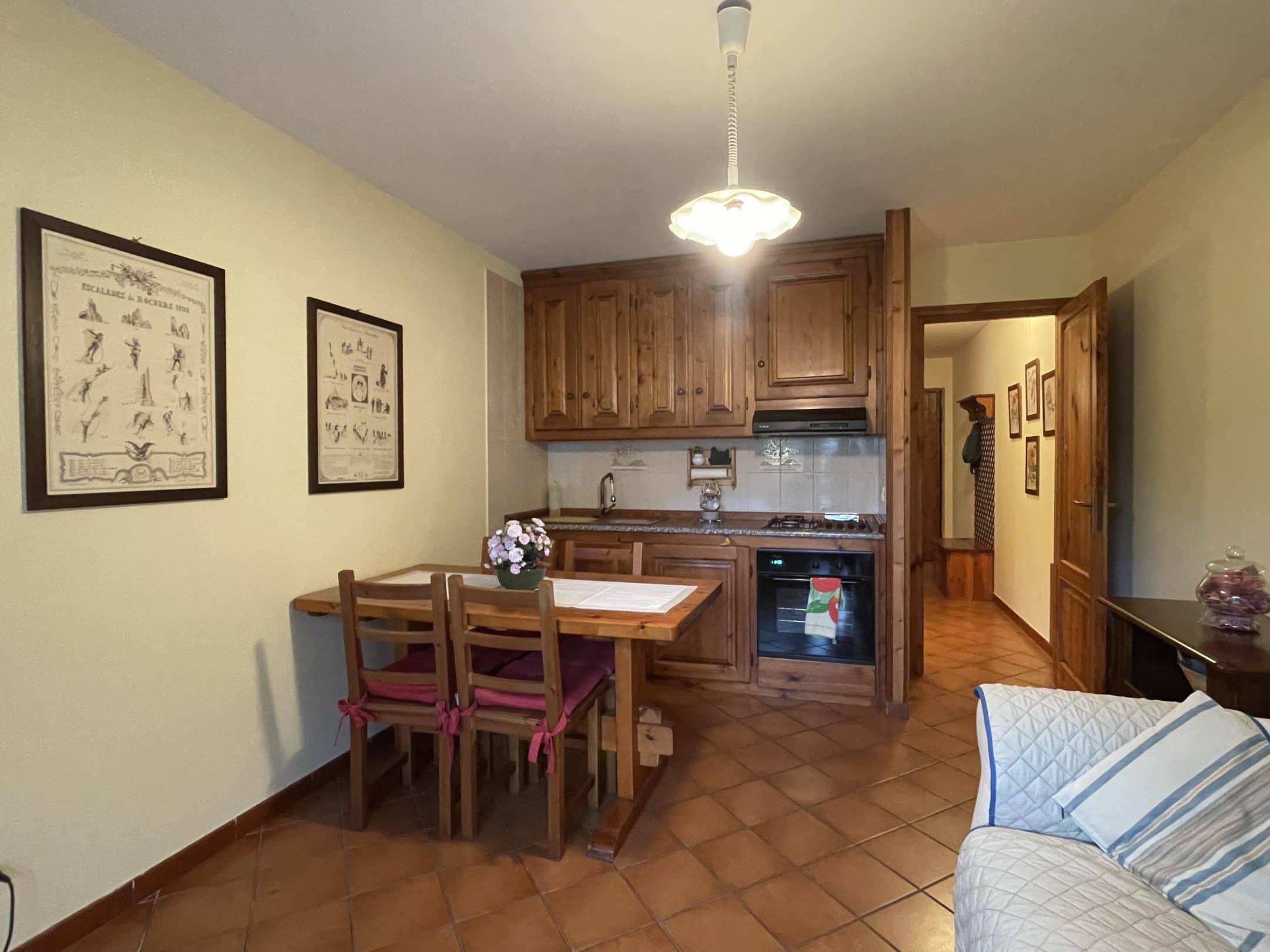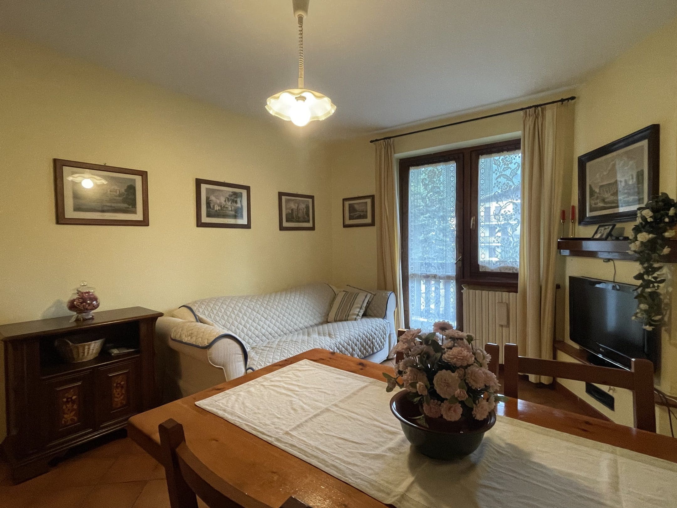 L’ingresso conduce a una graziosa cameretta, un bagno e a un ampio soggiorno luminoso con angolo cottura, che si apre su un generoso balcone esposto a sud, ideale per godere di una suggestiva vista panoramica sulle montagne.