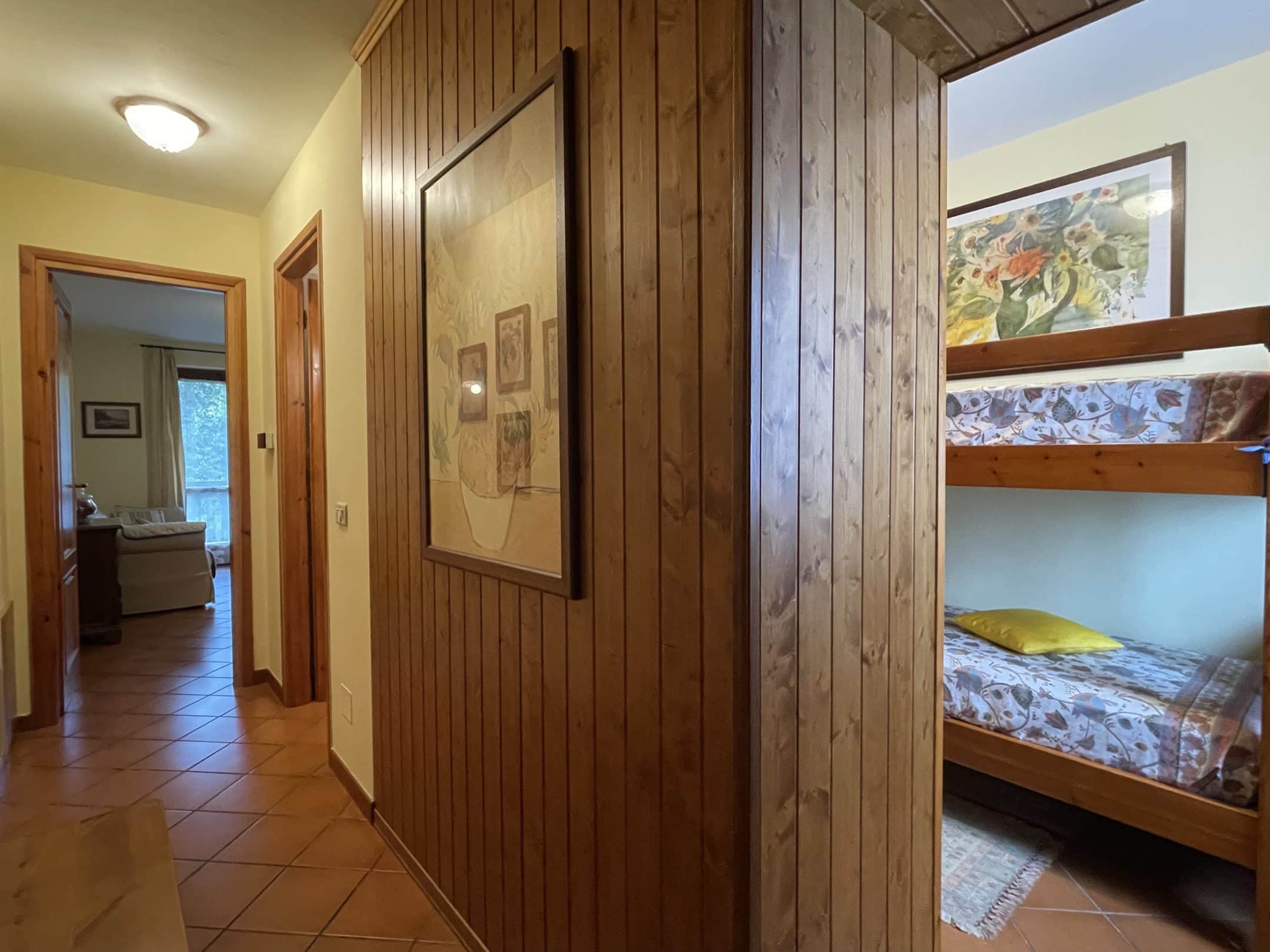 Gli interni, arredati su misura in legno massello, donano all’abitazione il calore autentico e l’atmosfera tipici della casa di montagna.